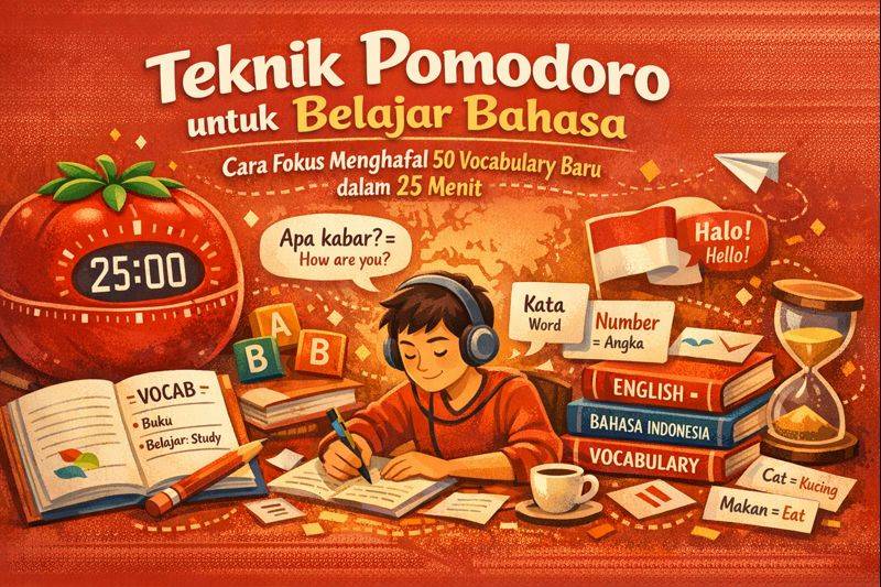 Pernah ga sih duduk berjam-jam depan buku tapi yang masuk kepala cuma 5 kata? Capek, frustrasi, terus mikir “mungkin otakku aja yang lemot.” Tenang, kamu nggak sendiri. Aku pernah 8 jam nonstop cuma hafal 12 kata Jerman dan langsung lupa keesokan harinya. Tapi ternyata bukan otakmu yang bermasalah—tapi metodenya. Teknik Pomodoro yang sederhana ini bisa bantu kamu hafal 50 vocabulary baru dalam 25 menit, tanpa perasaan bersalah atau burnout.