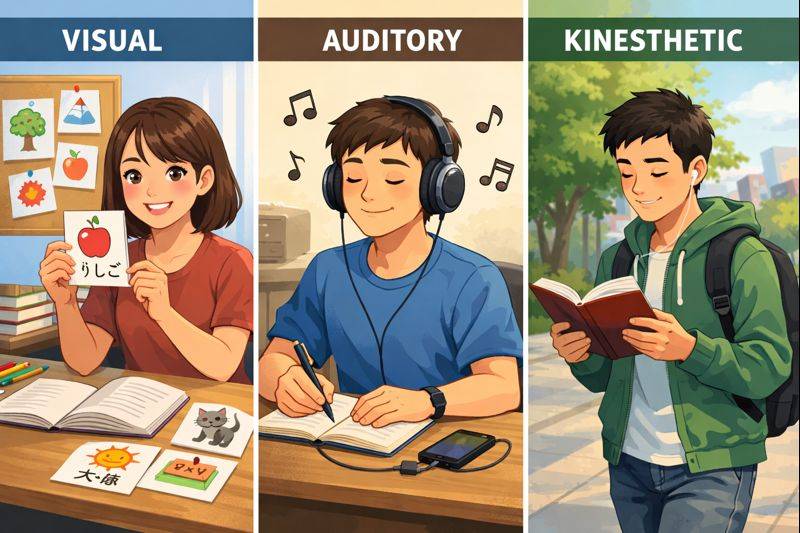 Untuk visual, aku pakai Anki + gambar. 20 menit fokus cukup karena mata cepat lelah. Untuk kinestetik, aku pernah jalan keliling kamar sambil ngucapin kata. Terdengar gila tapi works.